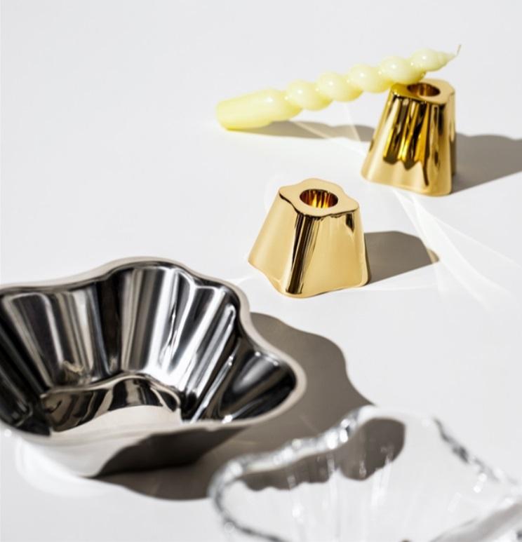 Klassinen muoto saa uusia ulottuvuuksia Aalto-kulhon modernien valmistusmateriaalien myötä. Alkuperäinen elävä muoto toistuu nyt ruostumattomasta teräksestä valmistetussa Aalto-kulhossa. Tyylikkään sisustusesineen pinnasta heijastuva valo tuo mieleen veden liikkeen.