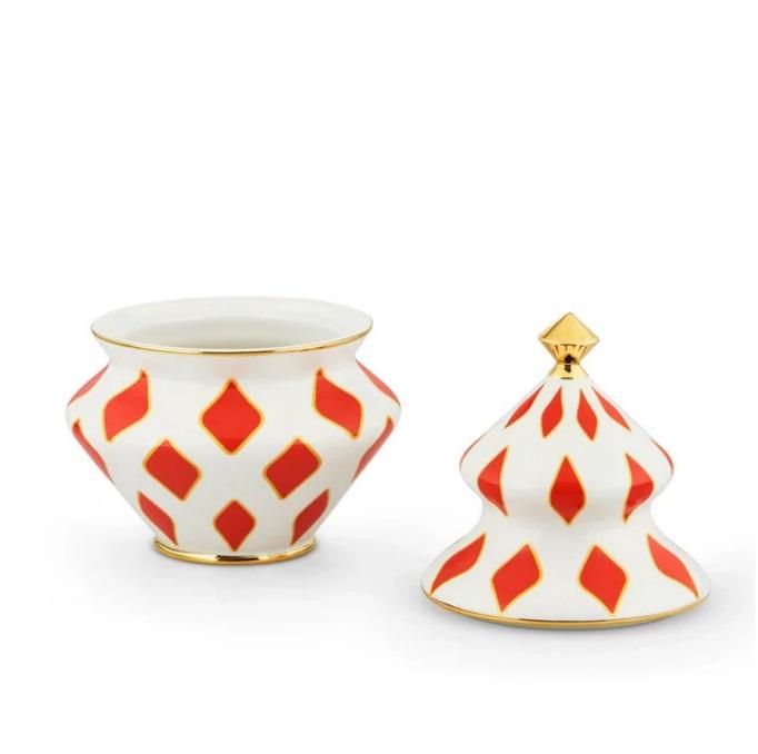 Alessi Delight kaunis kannellinen purkki, johon voit laittaa joulun karkit ja muut pikkunaposteltavat.