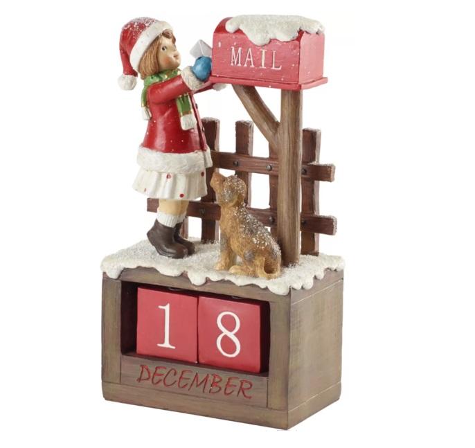 Kalenterityttö käyttää irrotettavia numeropaloja näyttääkseen, mikä joulukuun päivä on.