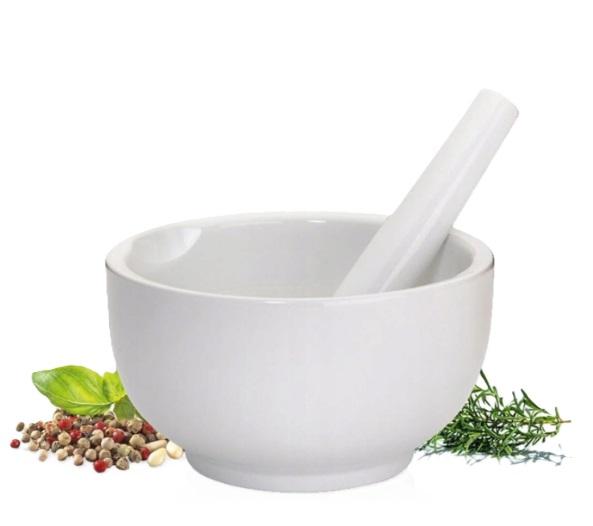 Pieni Küchenprofi posliinimortteli on täydellinen mausteiden jauhamiseen.