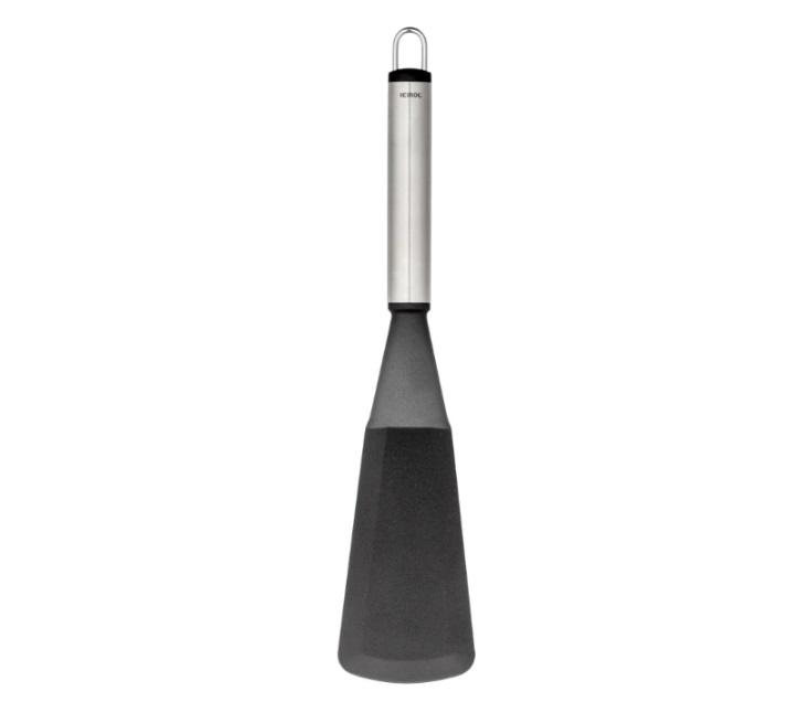 Laadukas nylonpäinen paistinlasta ei naarmuta pinnoitettuja ruoanvalmistusastioita.